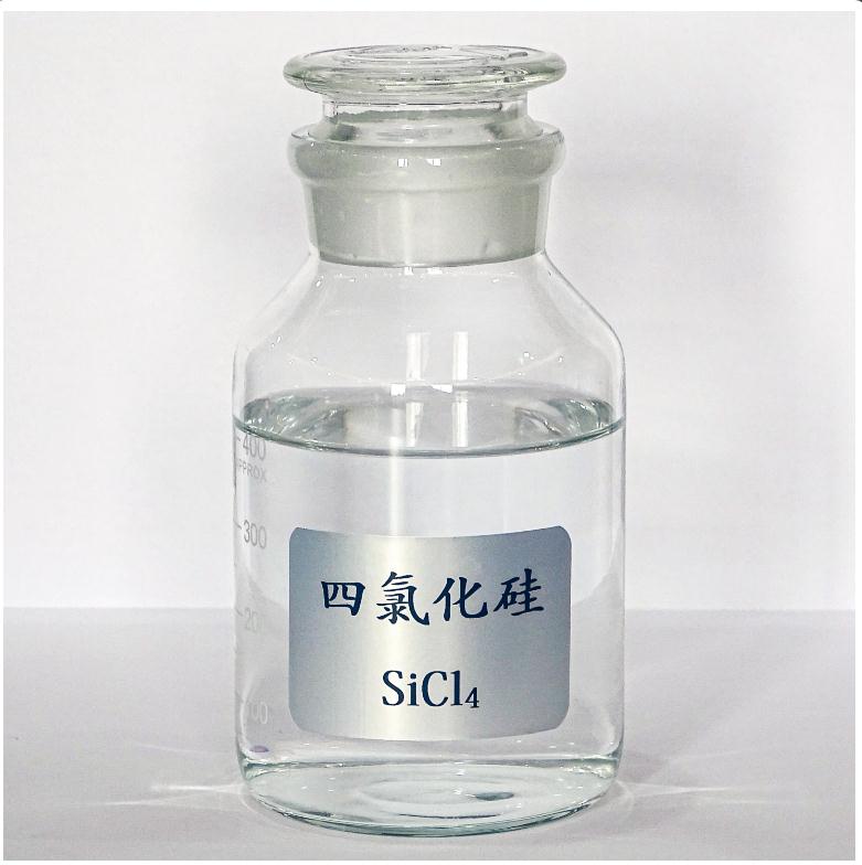 SILICON TETRACHLORIDE, molecular formula SiCl4, a kind of colorless or yellowish smoking liquid, its an inorganic chloride of silicon. Purified silicon tetrachloride is widely used in the manufacture of silicone esters, organic silicone oil, high temperature insulating paint, silicone rubber and heat resistant pad lining materials and other silicone compounds. The high purity silicon tetrachloride is the main raw material for the manufacture of fumed silica, optical fiber preform rod, polysilico